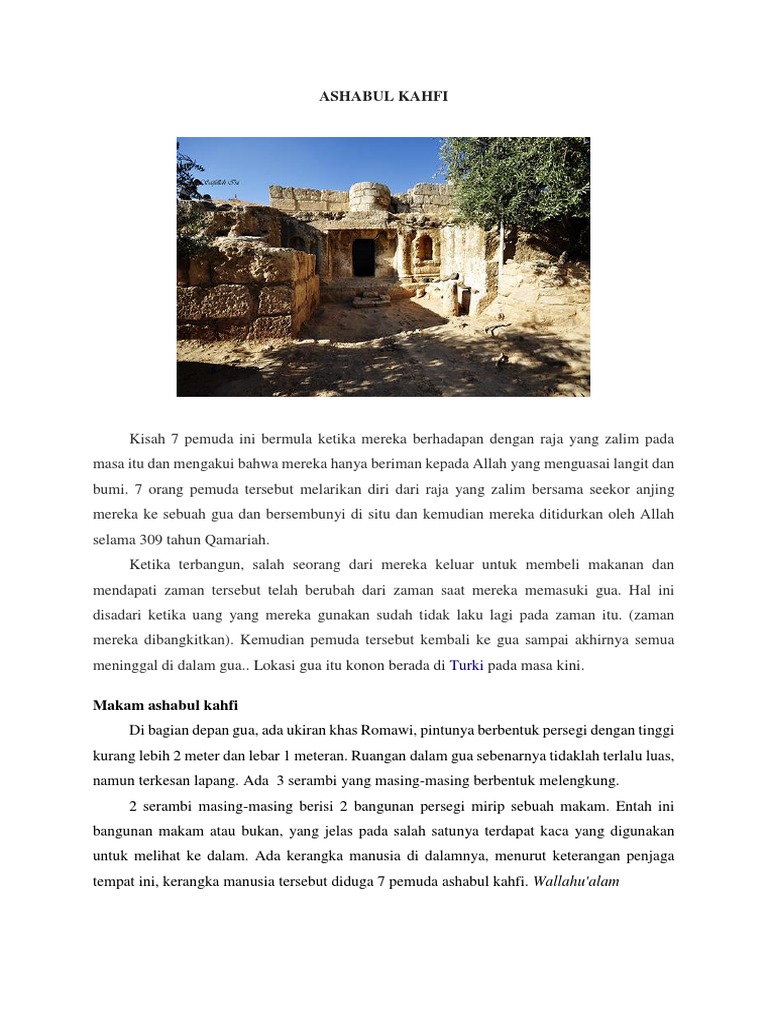 | Judul Surah: Rangkuman Ashabul Kahfi Pdf Kisah ashabul kahf Kisah ashabul kahf ini terjadi di negeri Romawi disebuah kota bernama Aphesus dan setelah kedatangan islam maka nama negeri itu menjadi Tharsus. |
